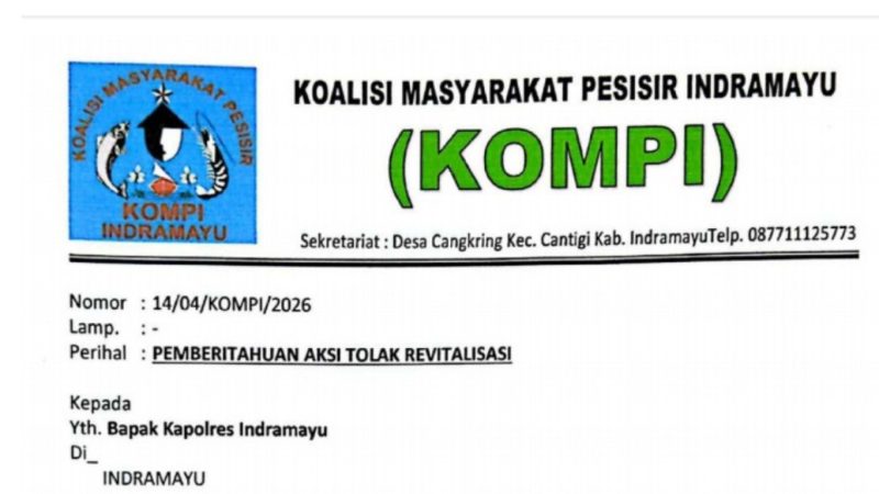 Suaradeemayu.com – Koalisi Masyarakat Pesisir Indramayu (KOMPI) kembali angkat bicara dan bersiap turun ke jalan dalam skala besar. Melalui surat resmi bernomor 14/04/KOMPI/2026 yang ditujukan kepada Kapolres Indramayu, mereka memastikan akan mengerahkan sekitar 10.000 massa dalam Aksi Damai besar-besaran pada Kamis, 30 April 2026 mendatang.